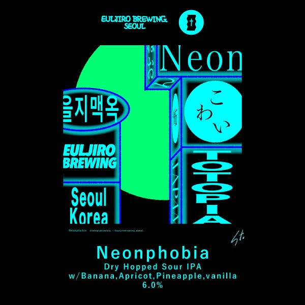 彼らと初めて会ったのは今年の2月に開催されたJapan Brewers Cup。昔僕らがリリースしたSour IPAを気に入ってくれたみたいで、味だけを頼りに現地韓国でコピーしてくれたそう。嬉しいですね。その後ちょうど日韓コラボイベントBEER JAMの開催があり一緒にビールを作る事になりました。使用したフルーツは、バナナ、アプリコット、パイナップルでバナナの特徴的な甘さと滑らかさにトロピカルな存在感が加えられて見事なバランスとなっています。Euljiroが位置する洗練されたネオンを使った街並みとTaproom、彼らの世界観であるサイバーパンクや未来都市、ディストピアをイメージしたデザインにチャレンジしました。EuljiroとTotopiaの見る重なった世界観やSourへのアプローチを融合させた一作となりました。